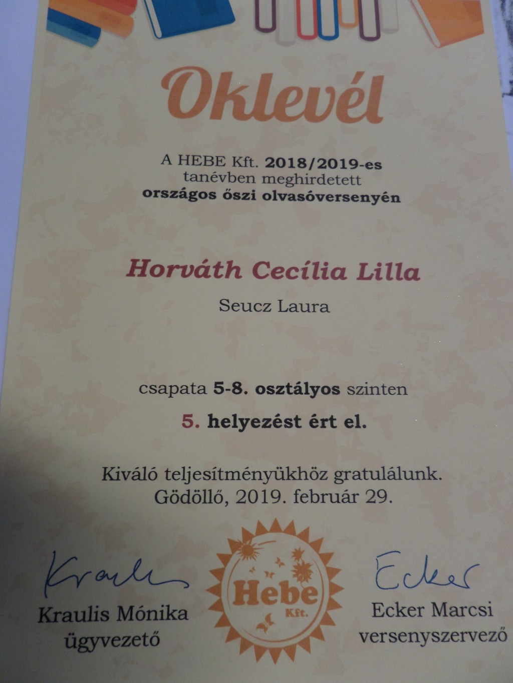 ORSZÁGOS OLVASÓVERSENY - 2019